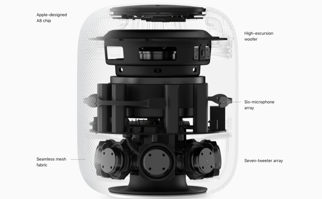 애플홈팟은 고음을 담당하는 트위터가 7개가 있습니다. 위치에 상관 없이 청취자에게 직접음 반사음 등으로 해서 스테레오로 들려 주기는 할 것 같습니다.