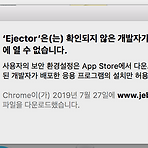 일반 PC와는 달리 맥 OS에서는 앱스토어에서 다운로드 하지 않은 출처가 불투명한 프로그램을 설치하게 되면 종종 뜨는 "확인되지 않은 개발자가 배포했기 때문에 열 수 없습니다"라는 경고 메시지가 뜹니다. 맥은 앱스토어에서만 다운로드하는걸 권장하기 때문에 바이러스 등에 강한 이유이기도 하지만 불편한 경우가 생길 수도 있습니다.이는 맥에서 신뢰할 수 있는 소프트웨어만 실행되도록 Gatekeeper라는 기술 때문이라고 합니다. 가장 안전한 접근 방법은 Mac App Store에서 해당 앱의 가장 최신 버전이나 대체 앱을 찾아보는 것입니다. 그러나 간혹 앱스토어를 이용하지 않고 인터넷에서 다운 받을 프로그램을 이용 할 때도 이런 문제가 발생합니다.저는 eject라는 프로그램을 쓰는데 이게 앱스토어에는 없습니다...